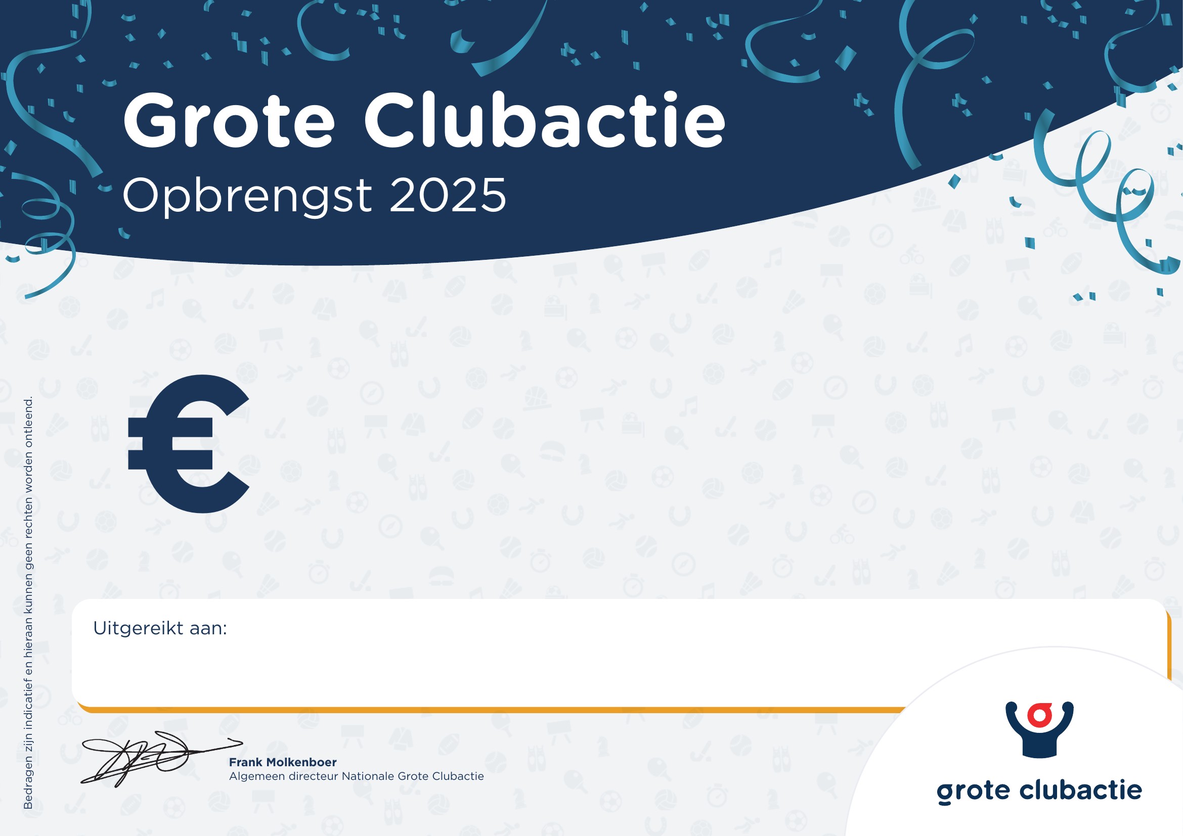 Zaterdag 15 november om 14 uur wordt eindbedrag van de Grote clubactie bekendgemaakt. Maar natuurlijk worden dan ook de prijzen uitgereikt aan de winnaars van de Grote clubaktie. De individuele winnaars en de 3 teams die de meeste loten hebben verkocht. Ook kan iedereen die 25 of meer loten heeft verkocht dan tussen 1400-1600 uur zijn/haar wel verdiende medaille ophalen.